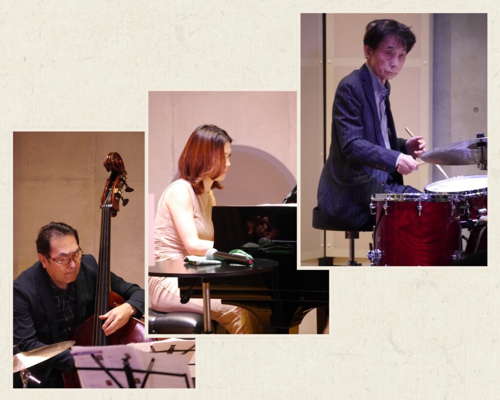 トランペット・サックス・トロンボーンそれぞれのソロパートの特徴的な音色、そしてそれを紡いでいくピアノと全体を支えるドラムとベースの響き、それぞれの楽器から奏でられる音に包まれながら、ジャズのおもしろさを堪能するひとときとなりました。
