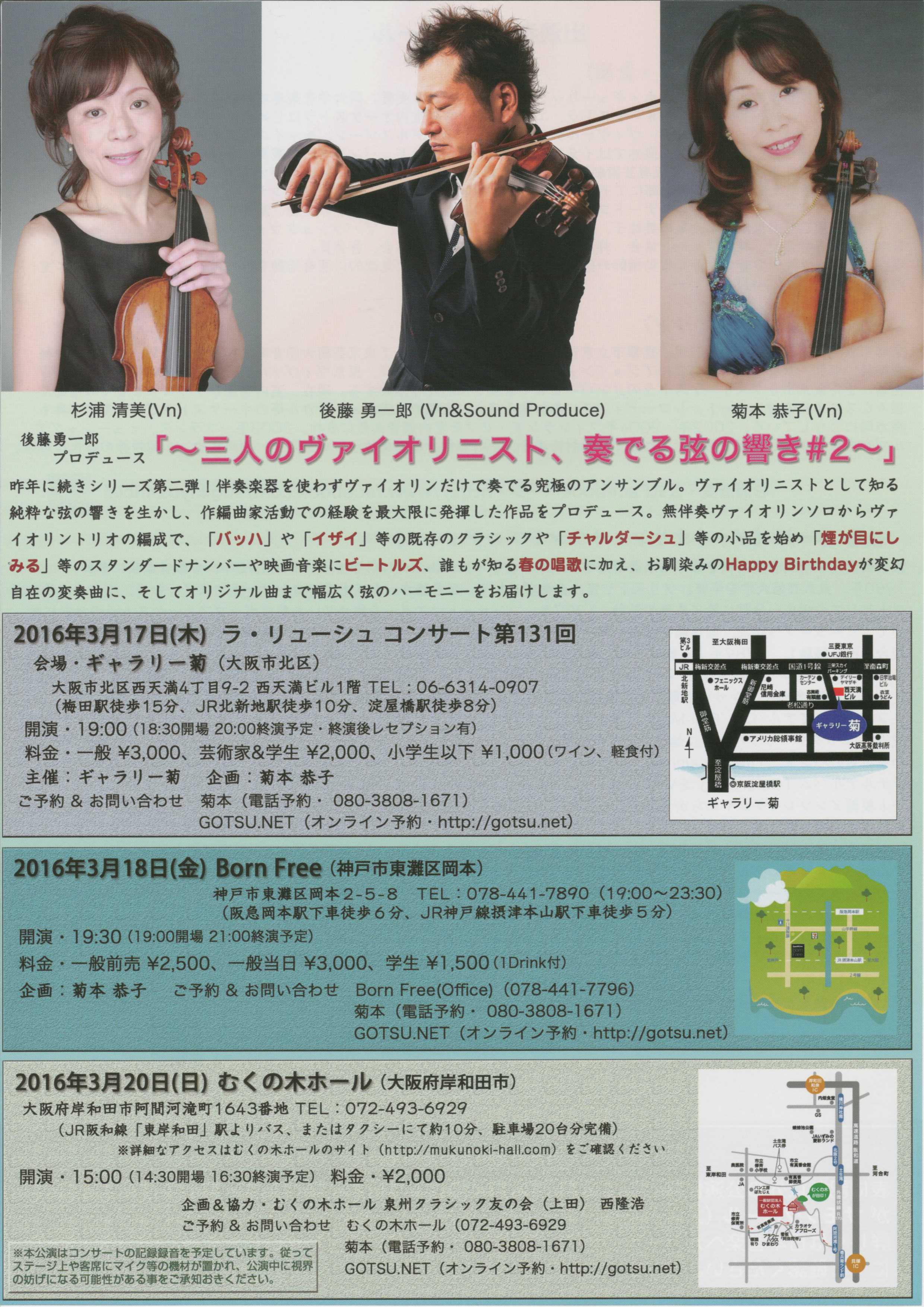 後藤勇一郎、杉浦清美、菊本恭子 ※チケットのお求めは菊本恭子080-3808-1671まで